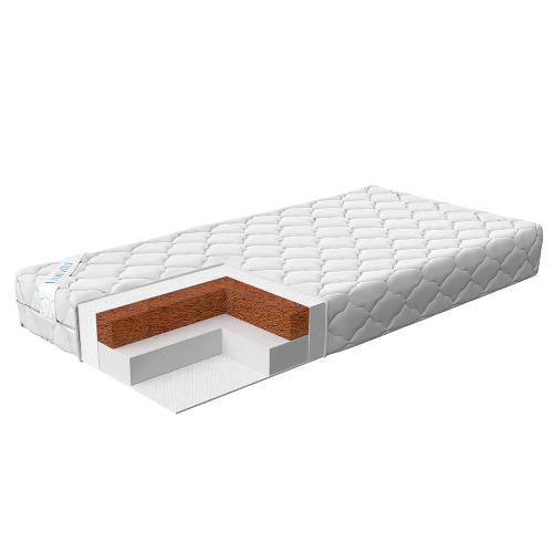 Детский матрас Nuovita Coco. Максимальная нагрузка на матрас 30 кг. Состав наполнителя: кокос 6 см + спанбонд. Жесткость матраса "выше среднего". Чехол матраса съёмный, выполнен из стеганного трикотажного полотна.