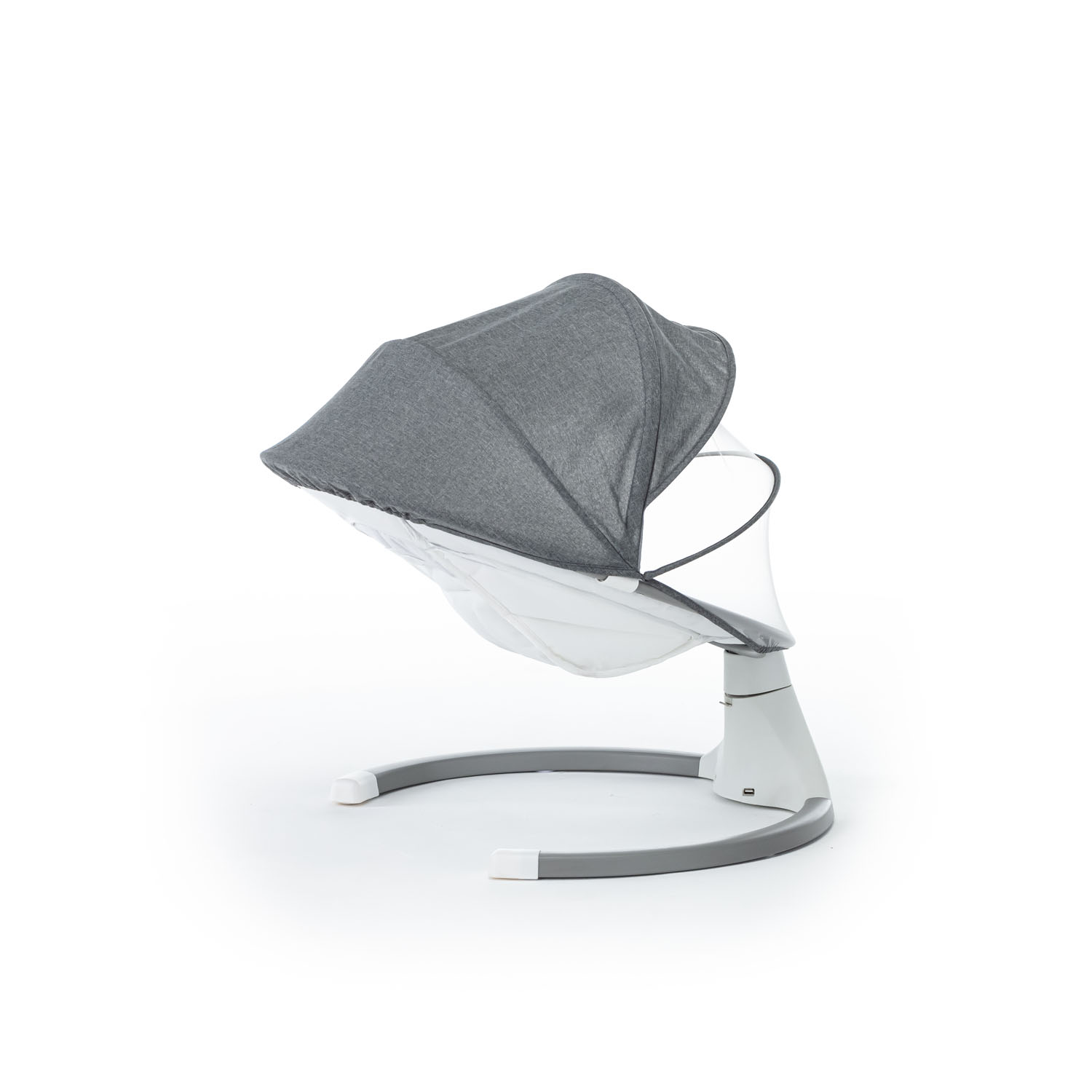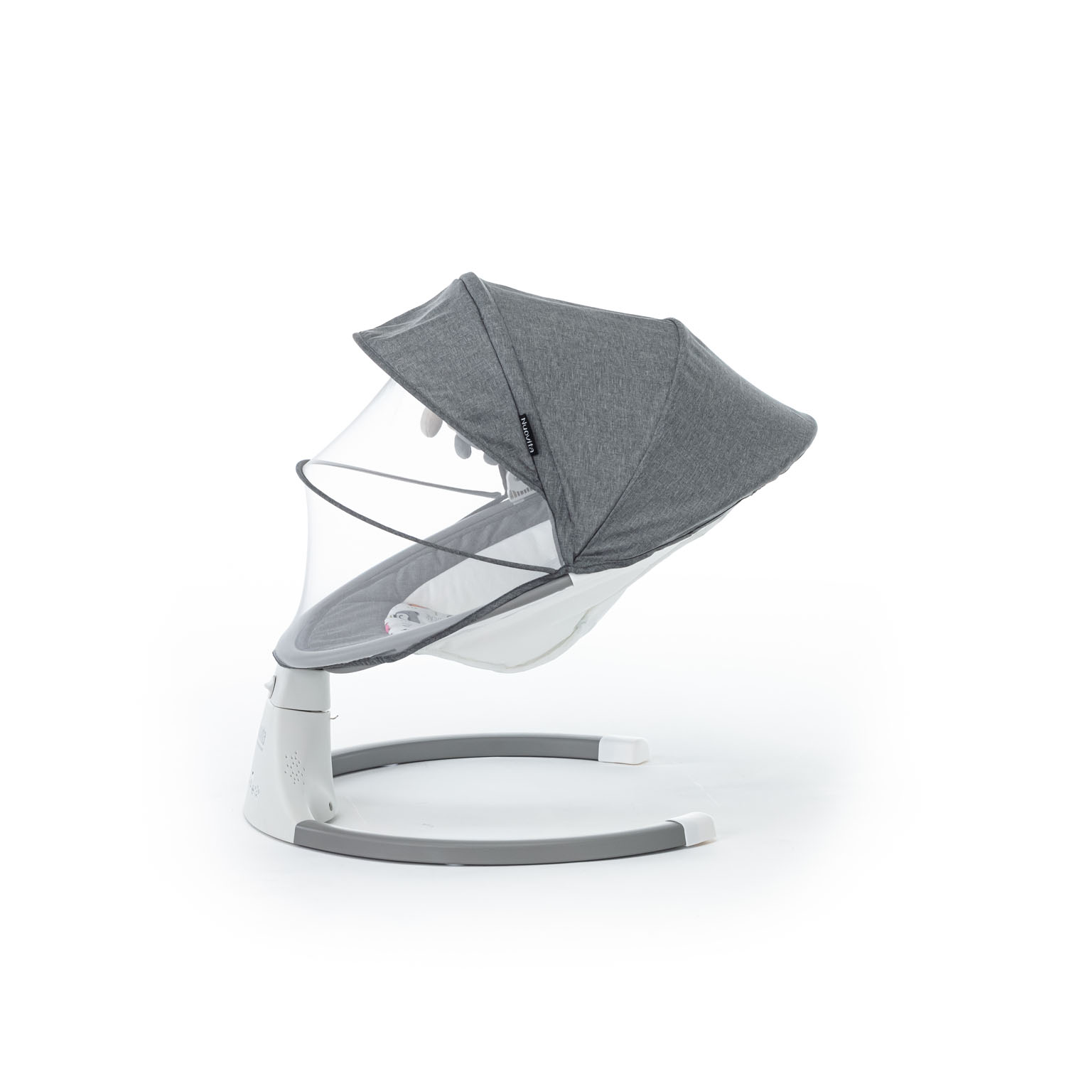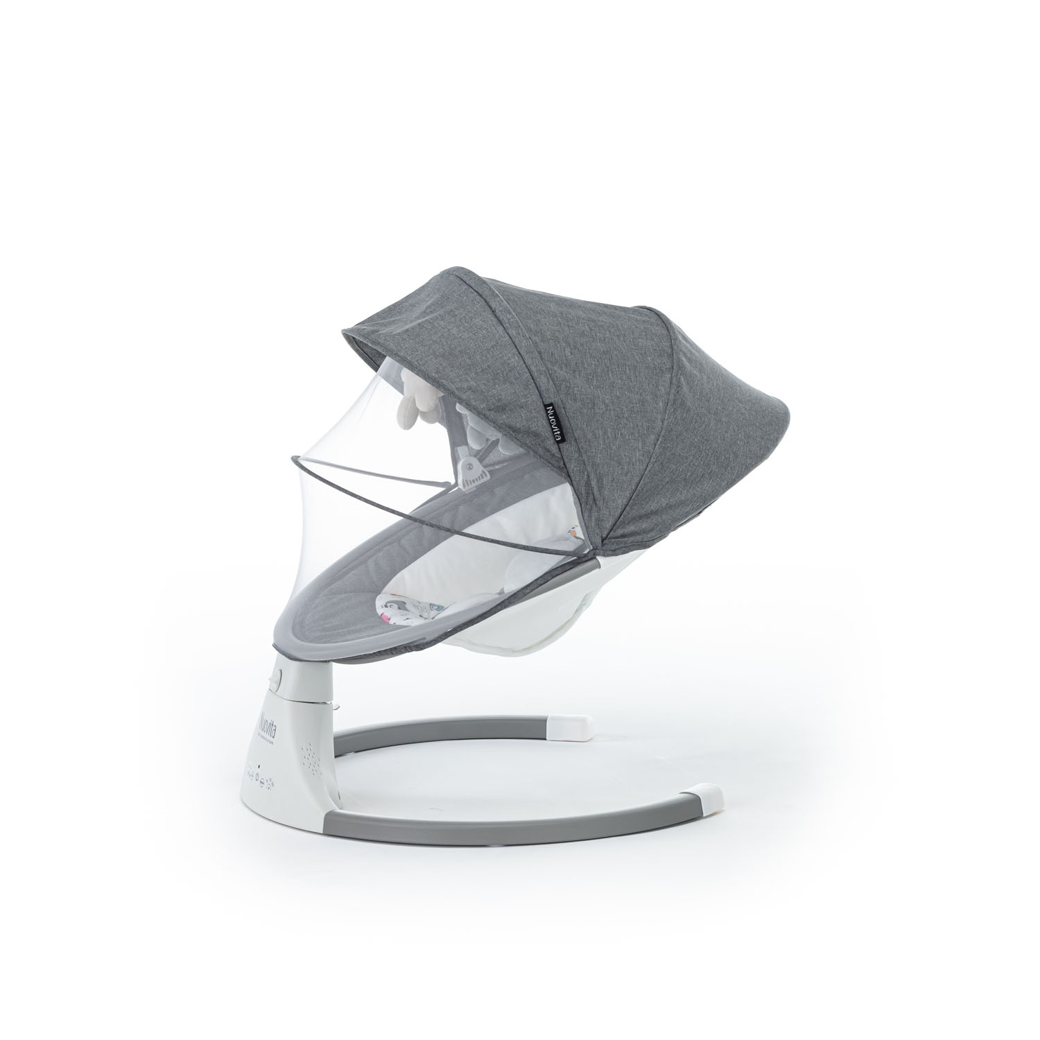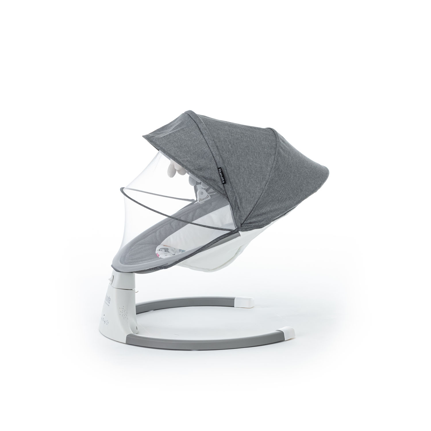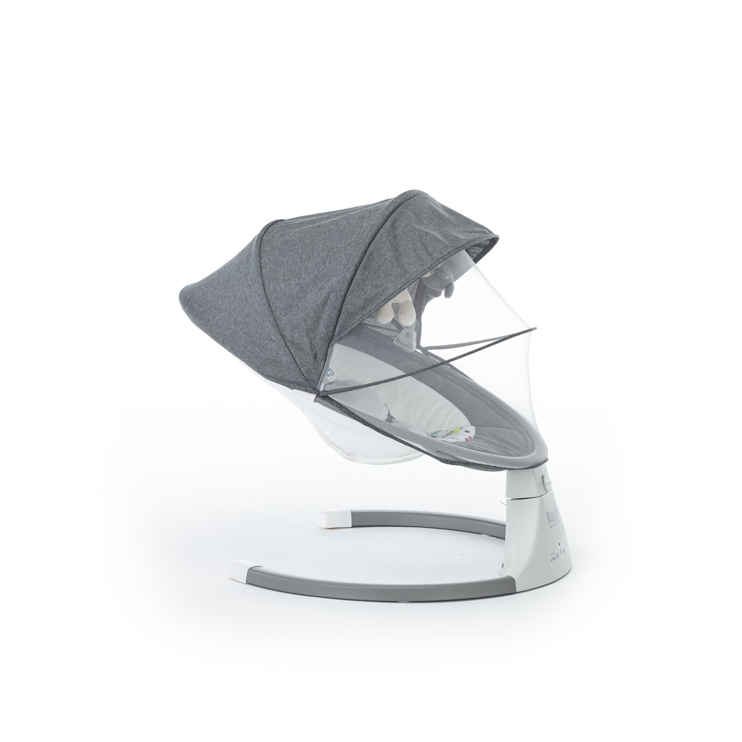 Электрокачели очень компактны, занимают немного места, быстро и легко разбираются, поэтому ими можно пользоваться не только дома, но и на даче. Объемный капюшон с москитной сеткой защитит малыша от солнца и от насекомых. Две очаровательные мягкие игрушки, которые крепятся на дуге, станут источником радостных улыбок ребенка.