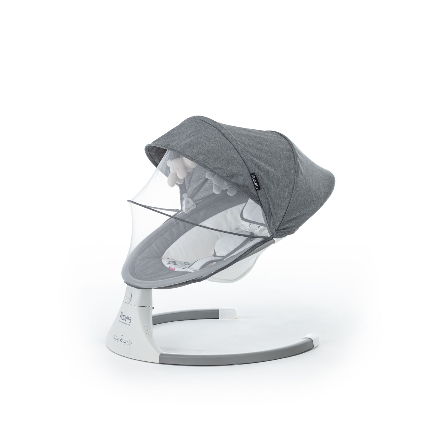 Электрокачели Нуовита Мистеро могут использоваться с первых дней жизни малыша, максимальный вес ребенка не должен превышать 9 кг (возраст 6 месяцев). Мягкое уютное ложе снабжено удобным подголовником и 5-ти точечными ремнями безопасности. Предусмотрено 5 скоростей укачивания, имеется таймер на 8, 15 и 30 минут, также можно установить спящий режим (стационарное положение). В памяти устройства заложено 12 мелодий, помимо этого можно проигрывать композиции из подключенного USB-флеш-накопителя. Для управления качанием и музыкальным сопровождением предусмотрены практичные сенсорные кнопки и пульт ДУ. Устройство работает от сети или батареек.