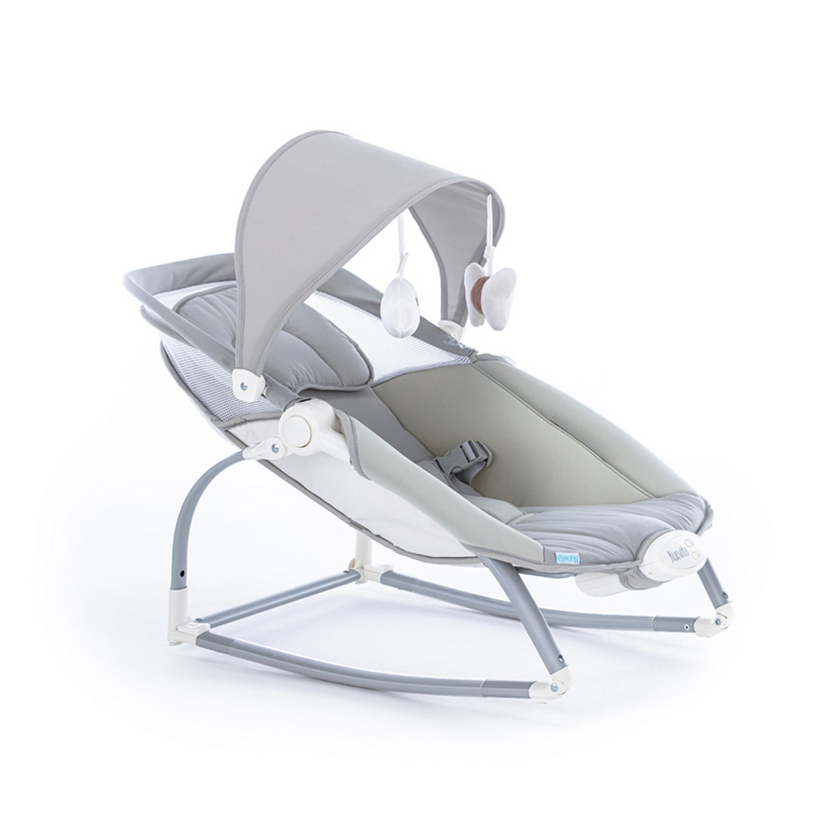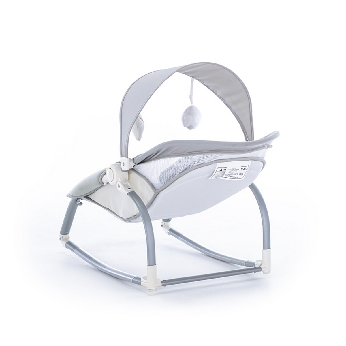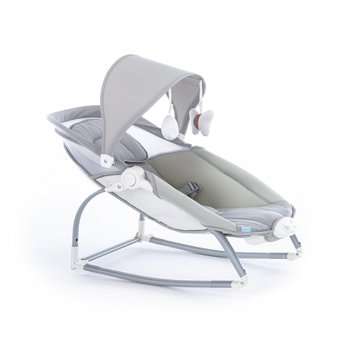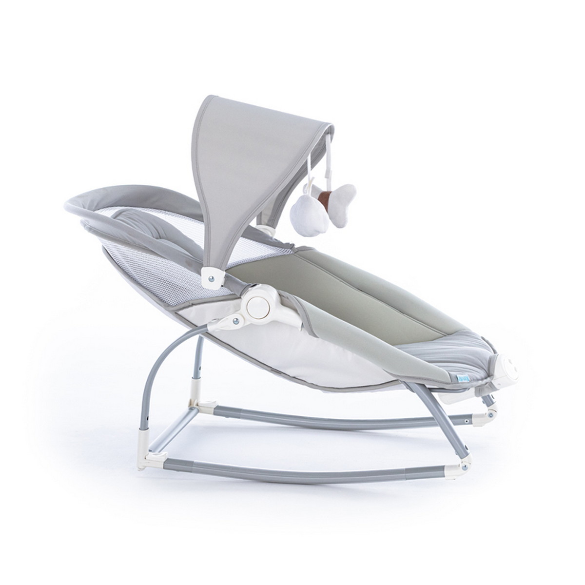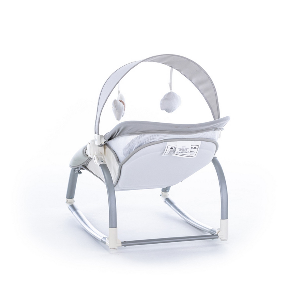 Особенностью этого шезлонга является наличие 2-х способов укачивания: родители могут запустить виброукачивание или воспользоваться традиционным качанием на дугообразных ножках. На концах дуг находятся специальные фиксаторы, благодаря которым шезлонг можно перевести в неподвижное положение. Виброукачивание и проигрывание мелодий запускается при помощи кнопок на вибро-музыкальном блоке. В памяти устройства находитс