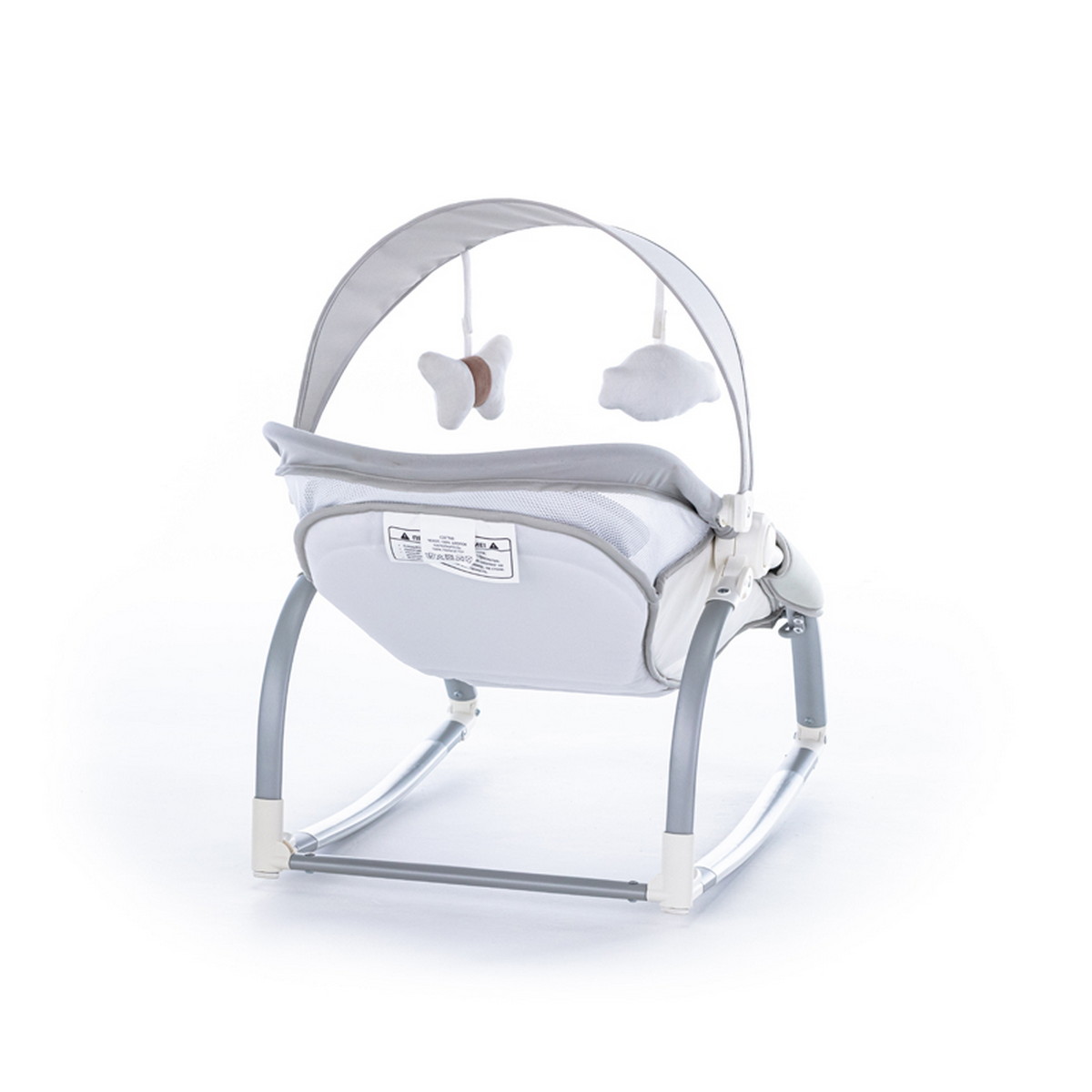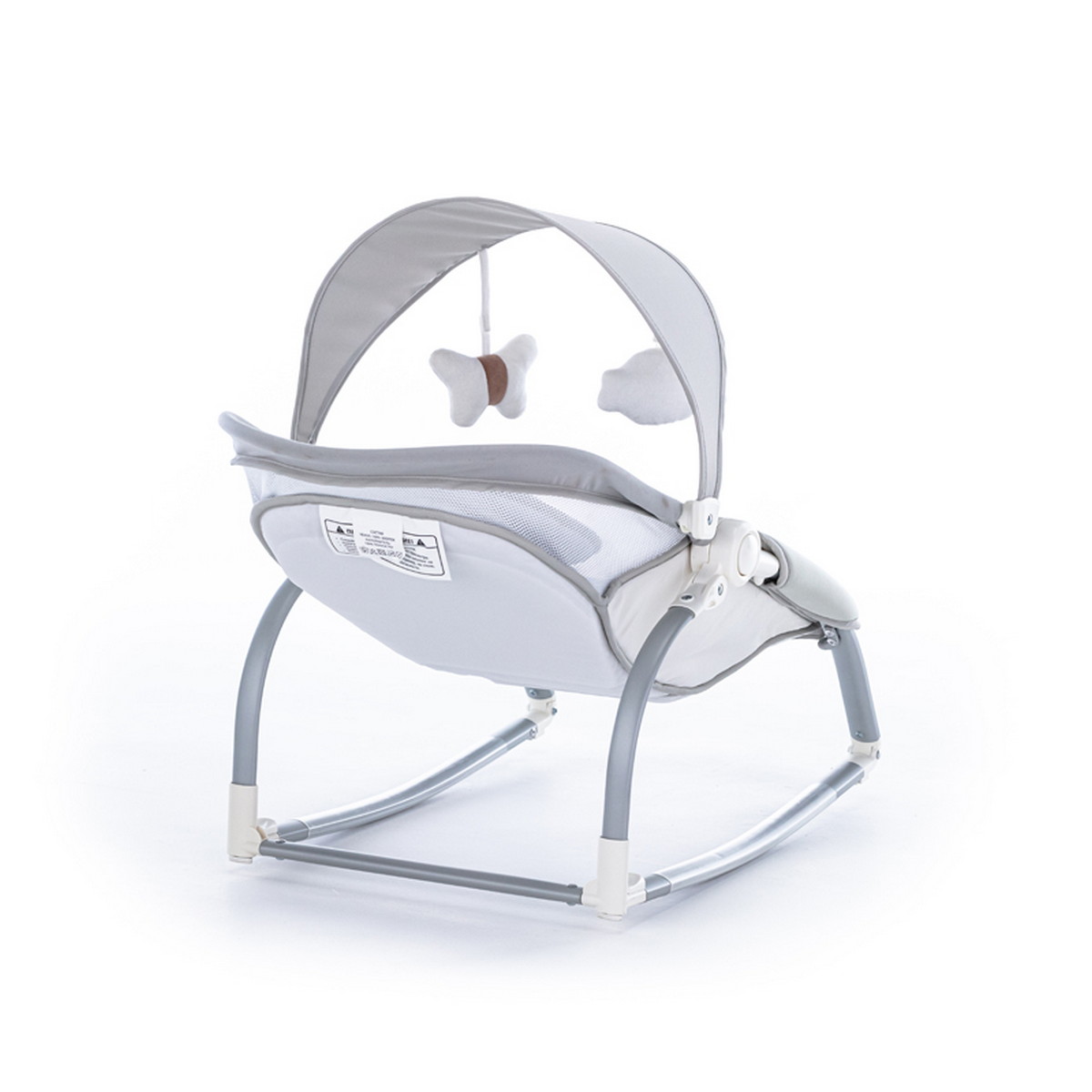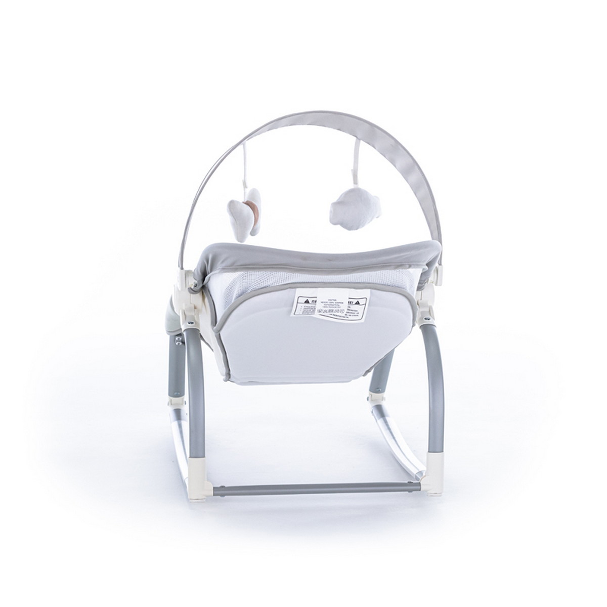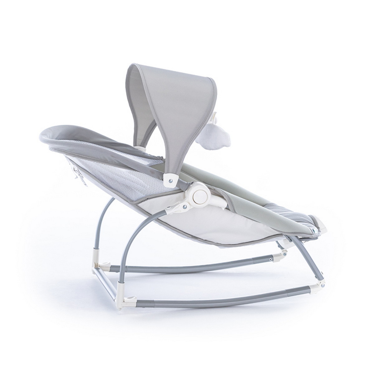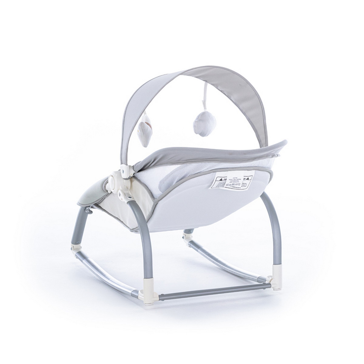 Особенностью этого шезлонга является наличие 2-х способов укачивания: родители могут запустить виброукачивание или воспользоваться традиционным качанием на дугообразных ножках. На концах дуг находятся специальные фиксаторы, благодаря которым шезлонг можно перевести в неподвижное положение. Виброукачивание и проигрывание мелодий запускается при помощи кнопок на вибро-музыкальном блоке. В памяти устройства находитс
