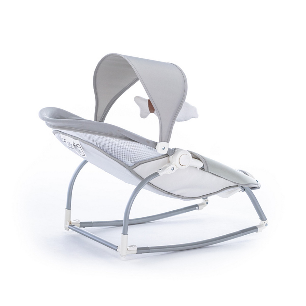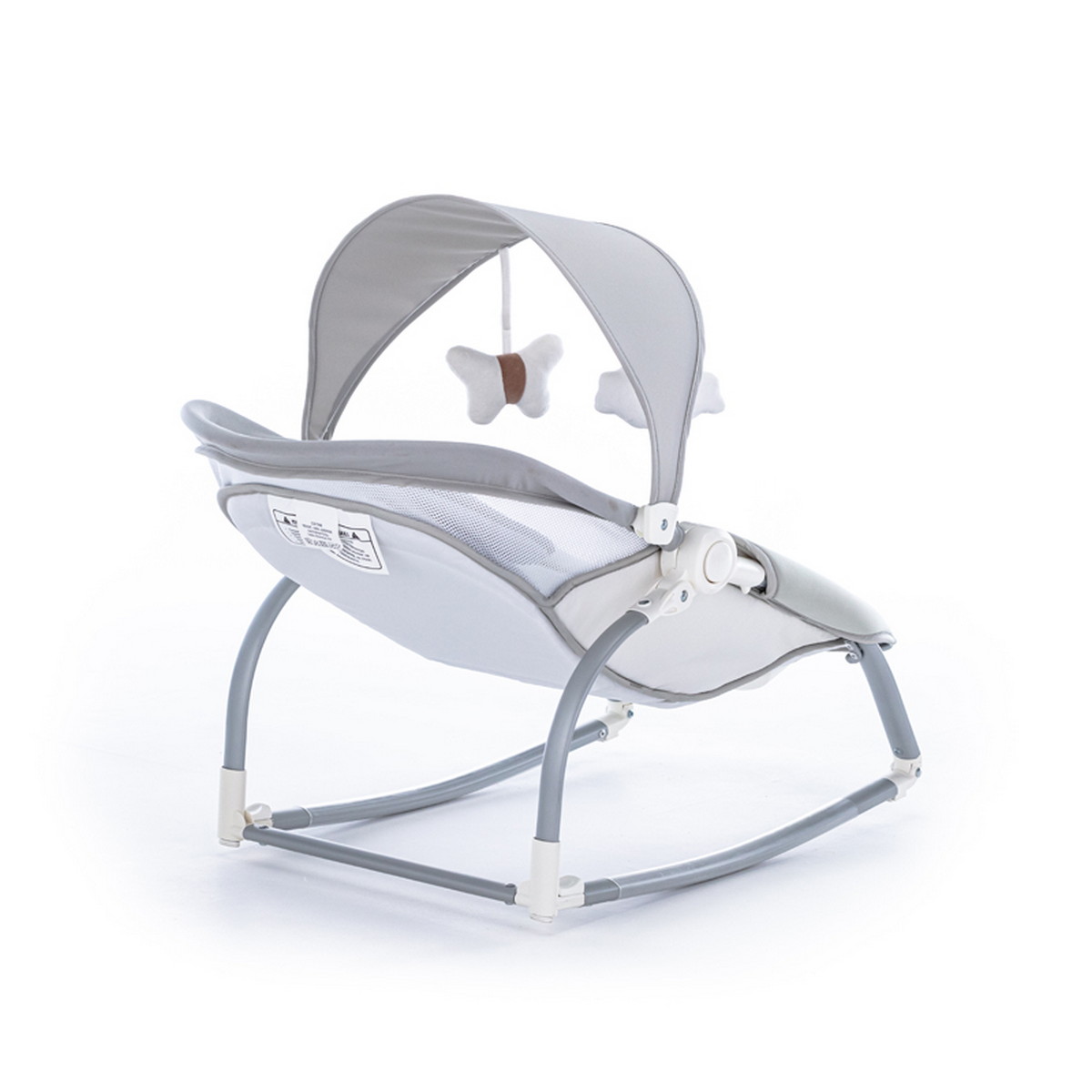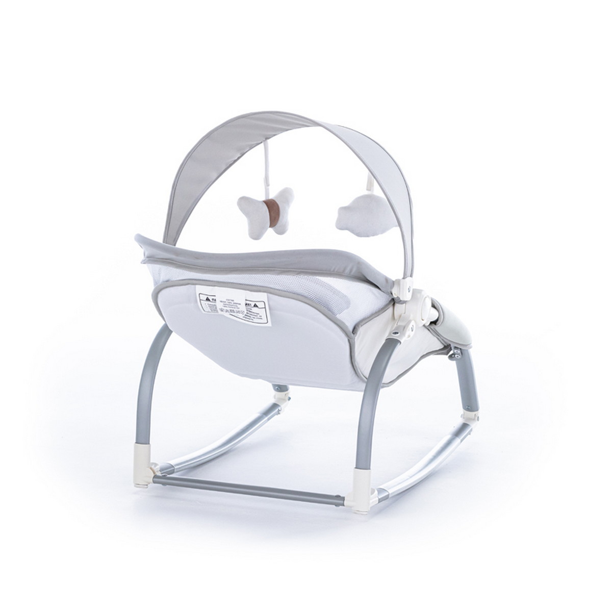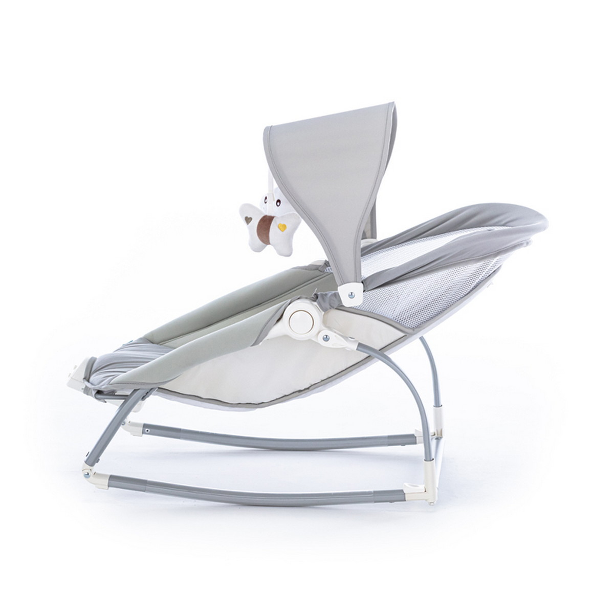 Особенностью этого шезлонга является наличие 2-х способов укачивания: родители могут запустить виброукачивание или воспользоваться традиционным качанием на дугообразных ножках. На концах дуг находятся специальные фиксаторы, благодаря которым шезлонг можно перевести в неподвижное положение. Виброукачивание и проигрывание мелодий запускается при помощи кнопок на вибро-музыкальном блоке. В памяти устройства находитс