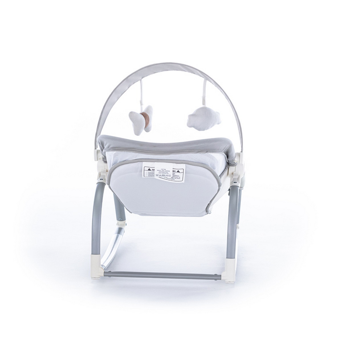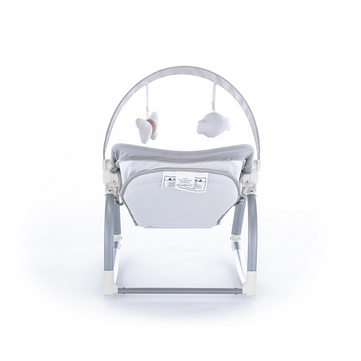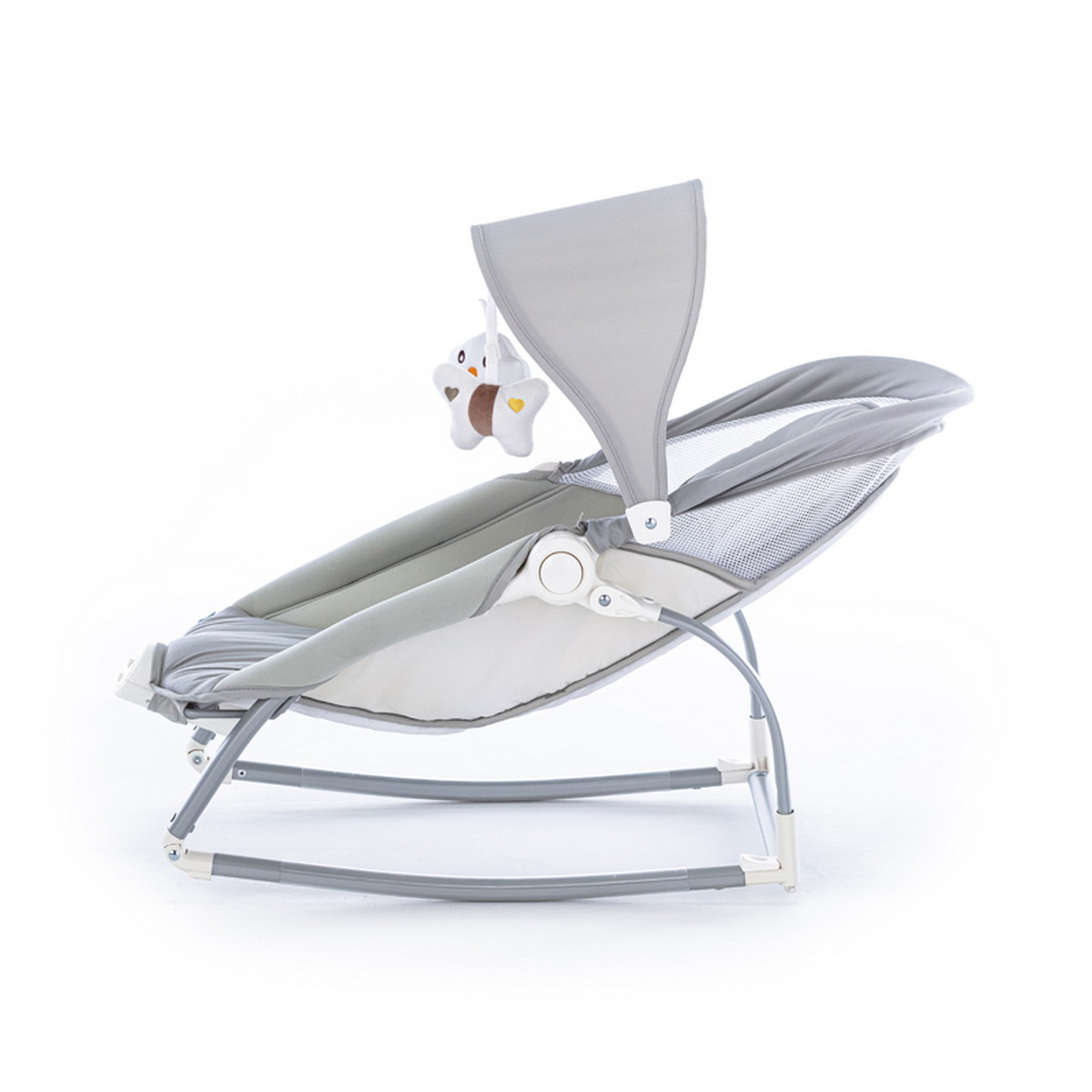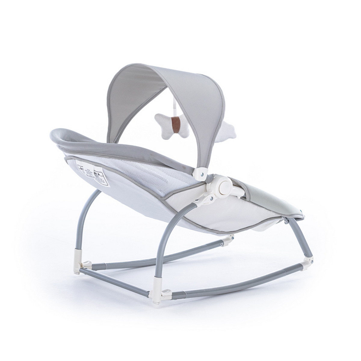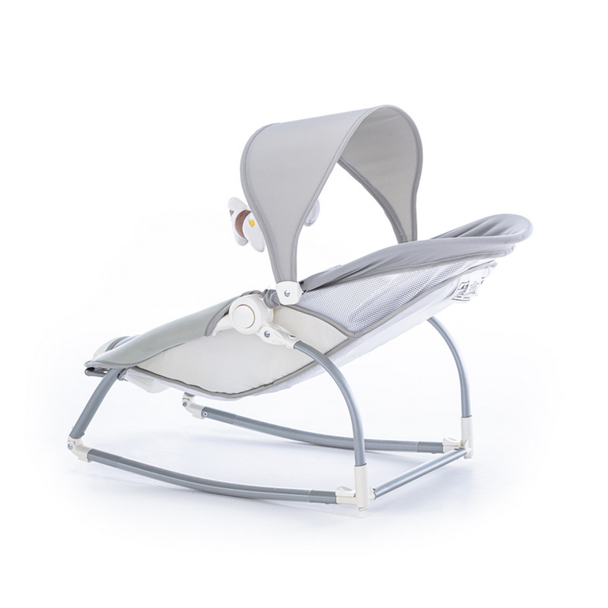 Особенностью этого шезлонга является наличие 2-х способов укачивания: родители могут запустить виброукачивание или воспользоваться традиционным качанием на дугообразных ножках. На концах дуг находятся специальные фиксаторы, благодаря которым шезлонг можно перевести в неподвижное положение. Виброукачивание и проигрывание мелодий запускается при помощи кнопок на вибро-музыкальном блоке. В памяти устройства находитс