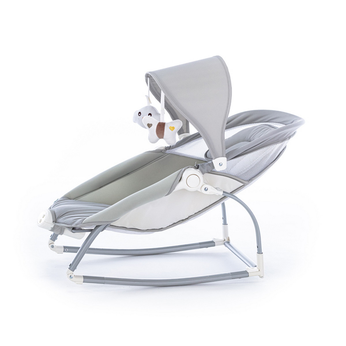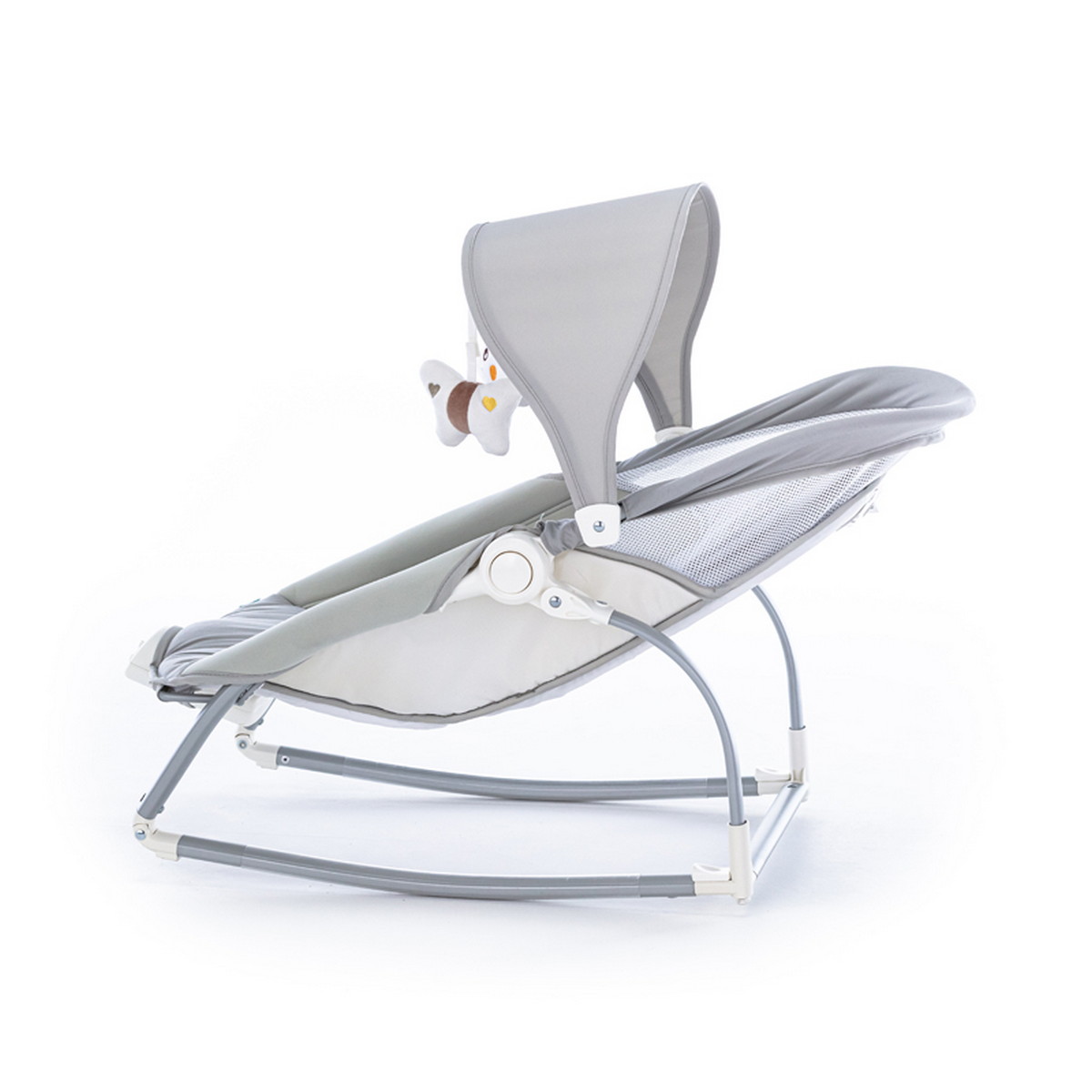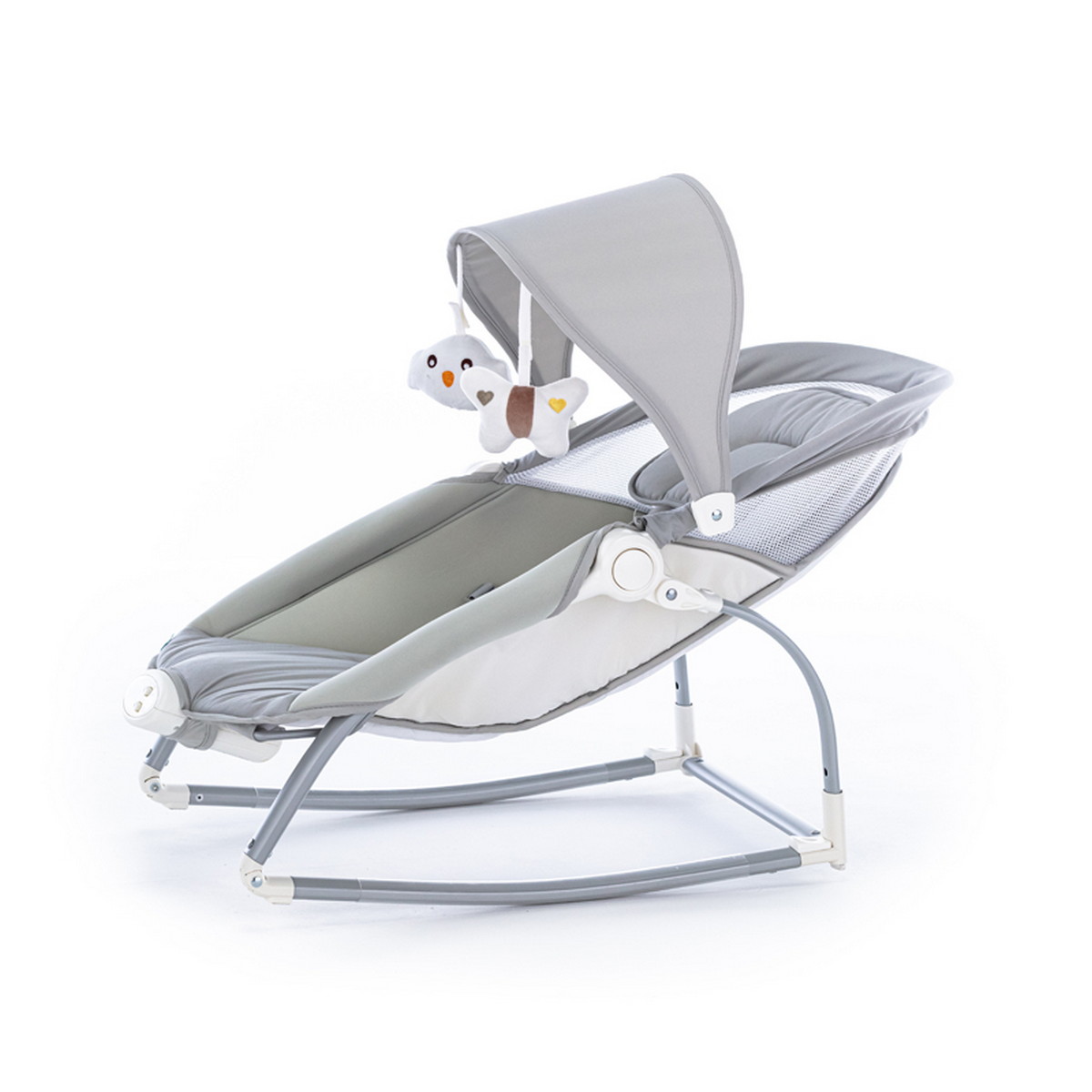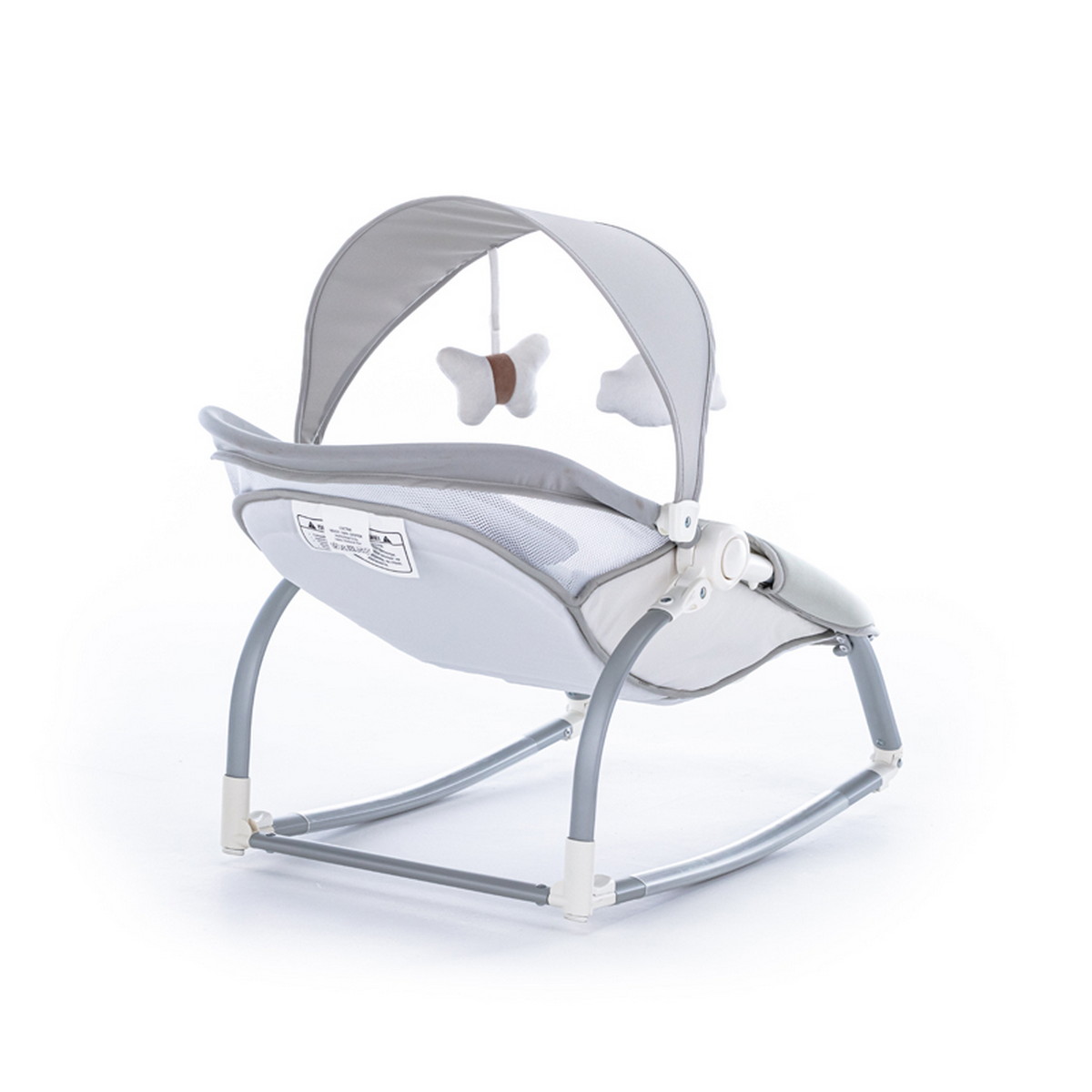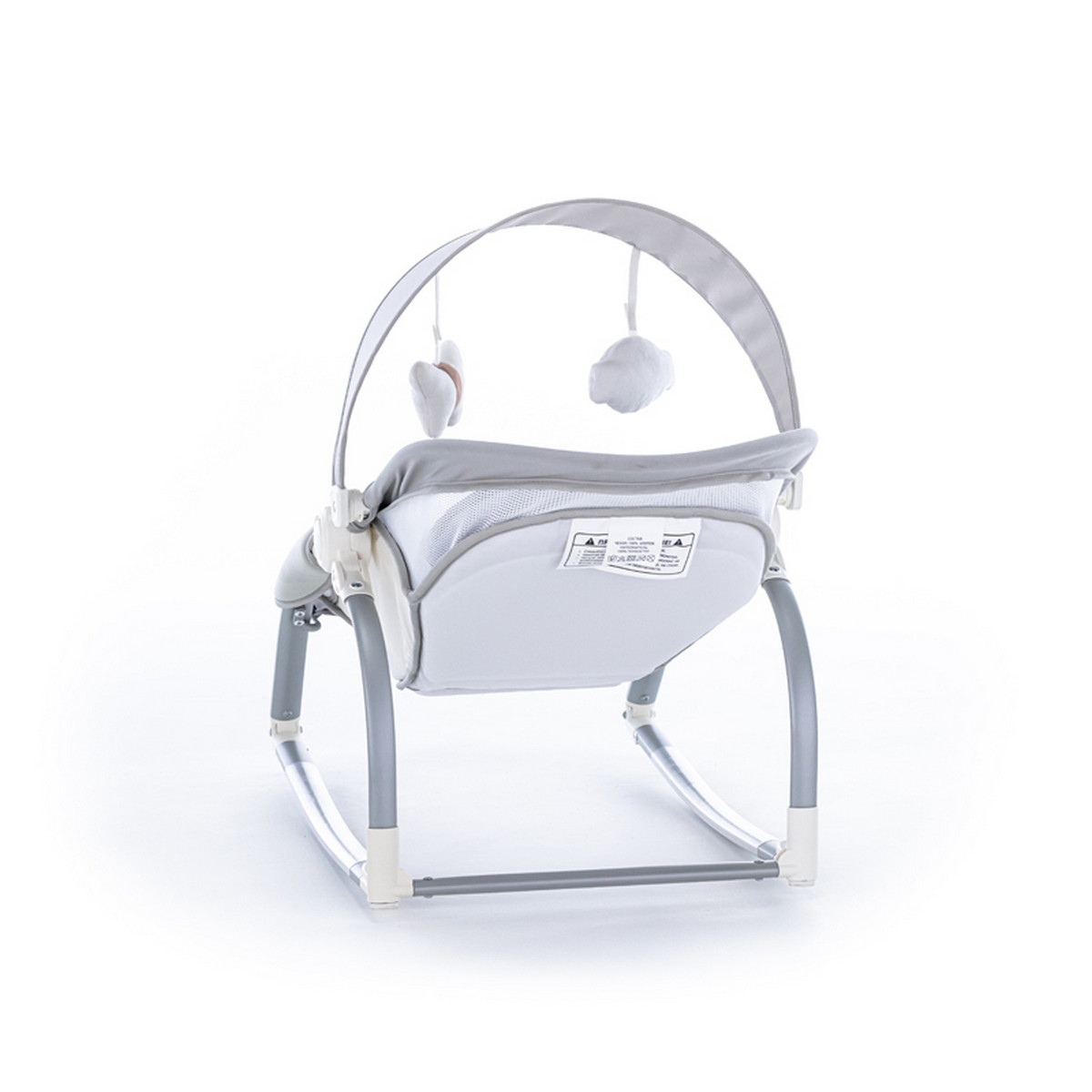 Особенностью этого шезлонга является наличие 2-х способов укачивания: родители могут запустить виброукачивание или воспользоваться традиционным качанием на дугообразных ножках. На концах дуг находятся специальные фиксаторы, благодаря которым шезлонг можно перевести в неподвижное положение. Виброукачивание и проигрывание мелодий запускается при помощи кнопок на вибро-музыкальном блоке. В памяти устройства находитс