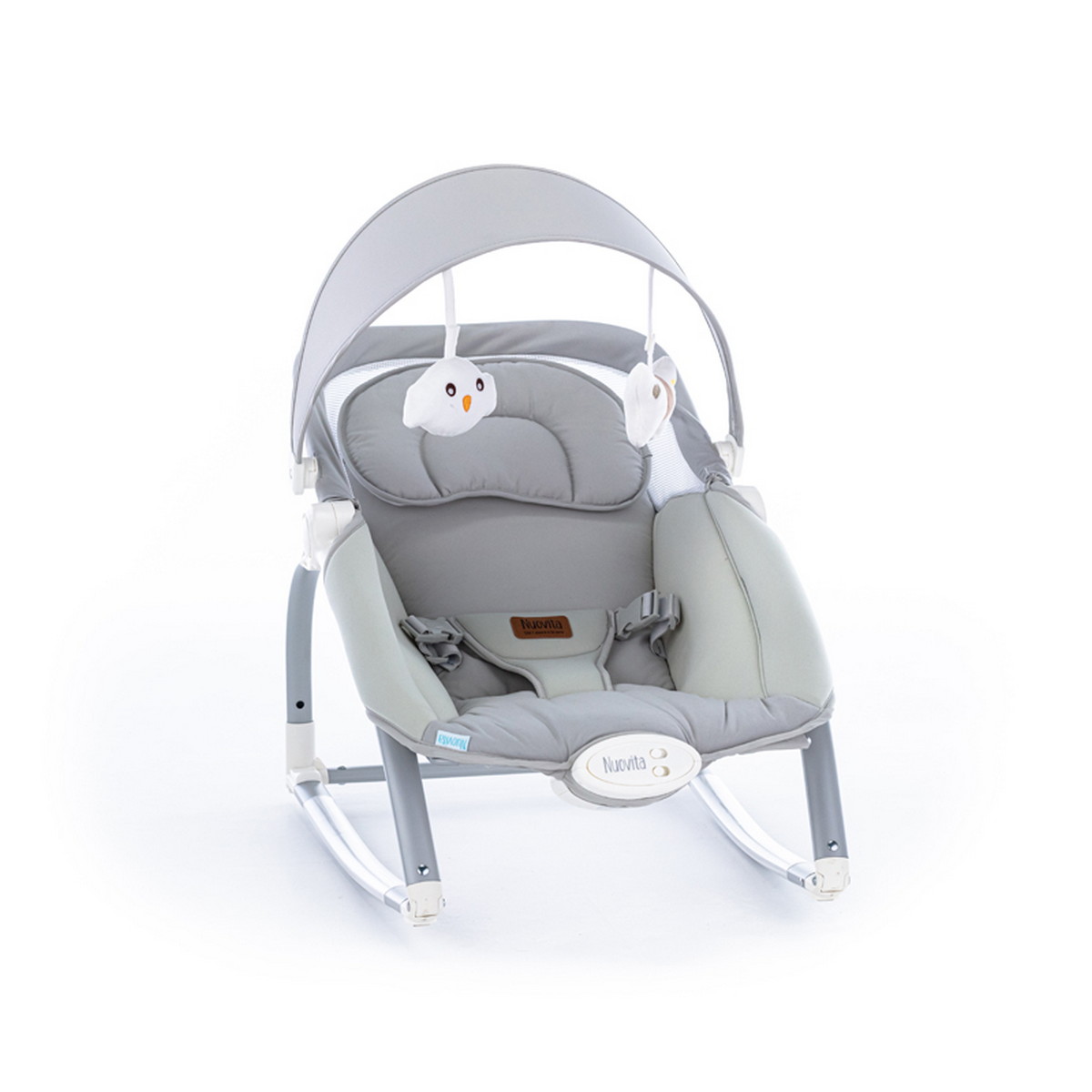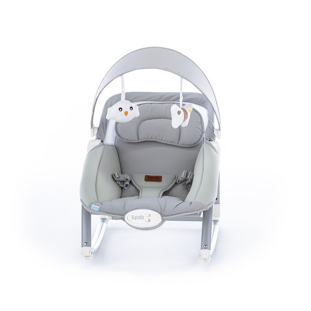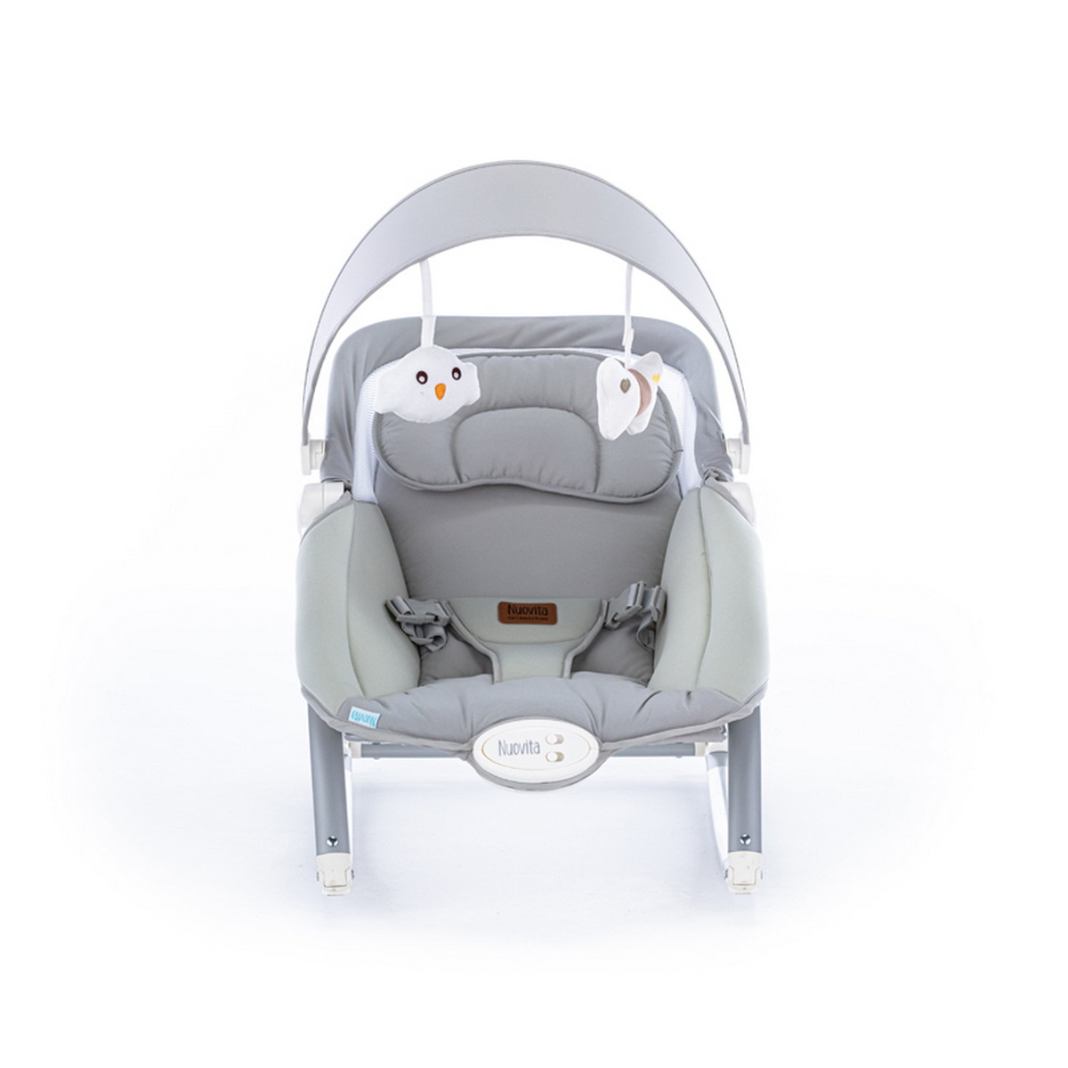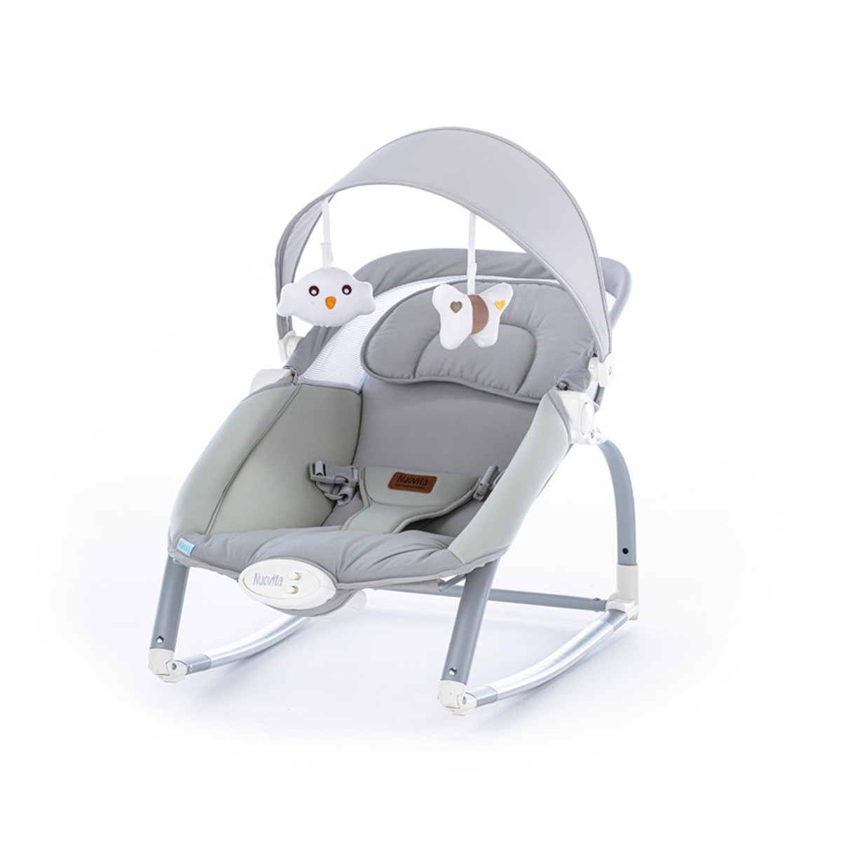 Шезлонг Mese от итальянской торговой марки Nuovita — это уютный и компактный шезлонг-качалка, который поможет родителям развлечь, успокоить и убаюкать новорожденного. Мягкие игрушки, подвешенные на дуге-козырьке, помогут малышу в развитии глазных мышц и вестибулярного аппарата.