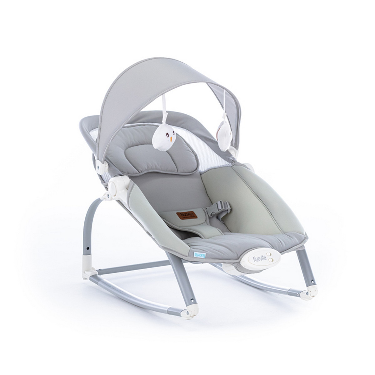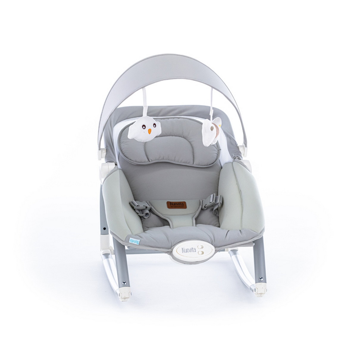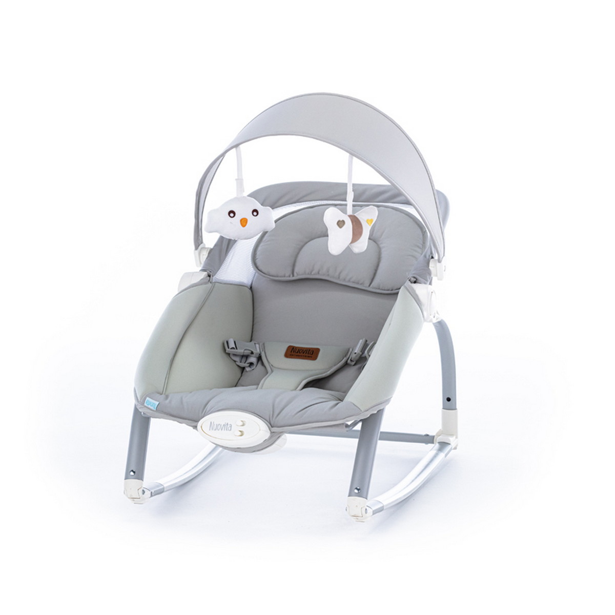 Шезлонг Mese от итальянской торговой марки Nuovita — это уютный и компактный шезлонг-качалка, который поможет родителям развлечь, успокоить и убаюкать новорожденного. Мягкие игрушки, подвешенные на дуге-козырьке, помогут малышу в развитии глазных мышц и вестибулярного аппарата.