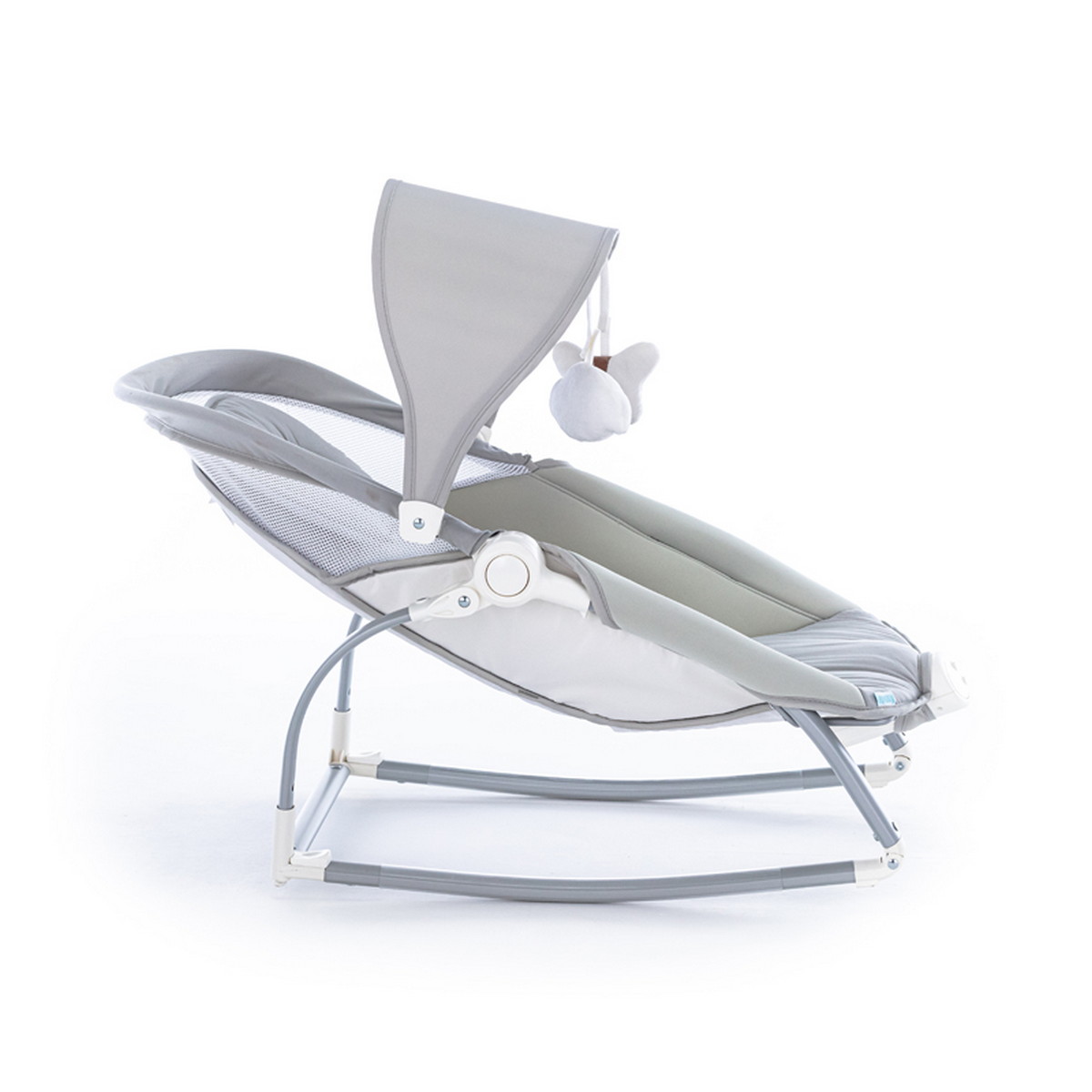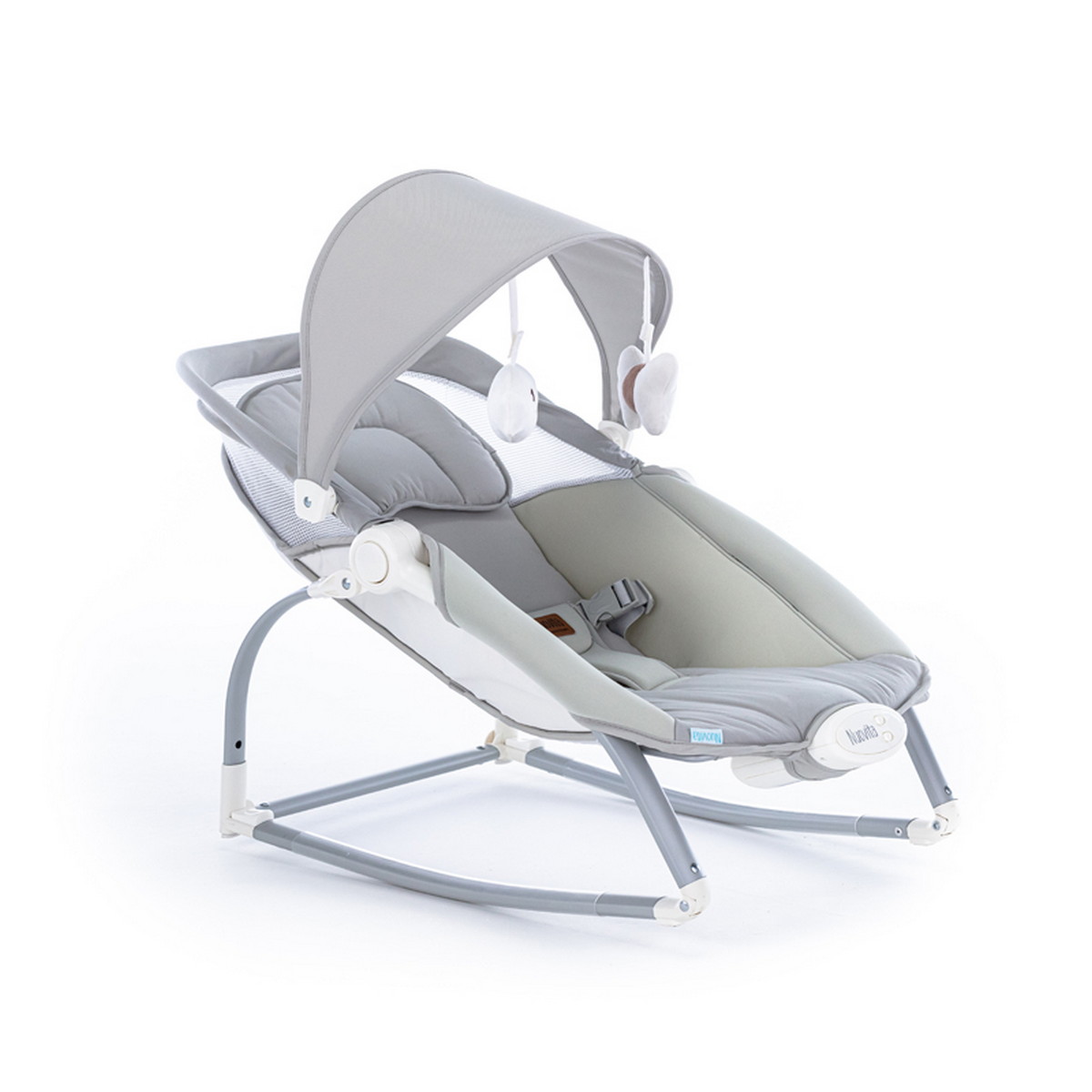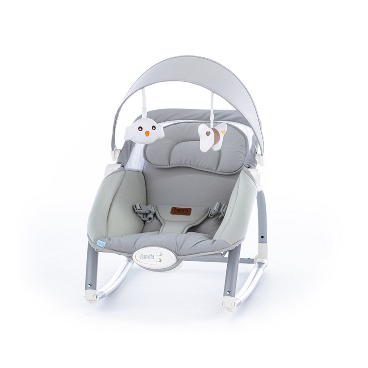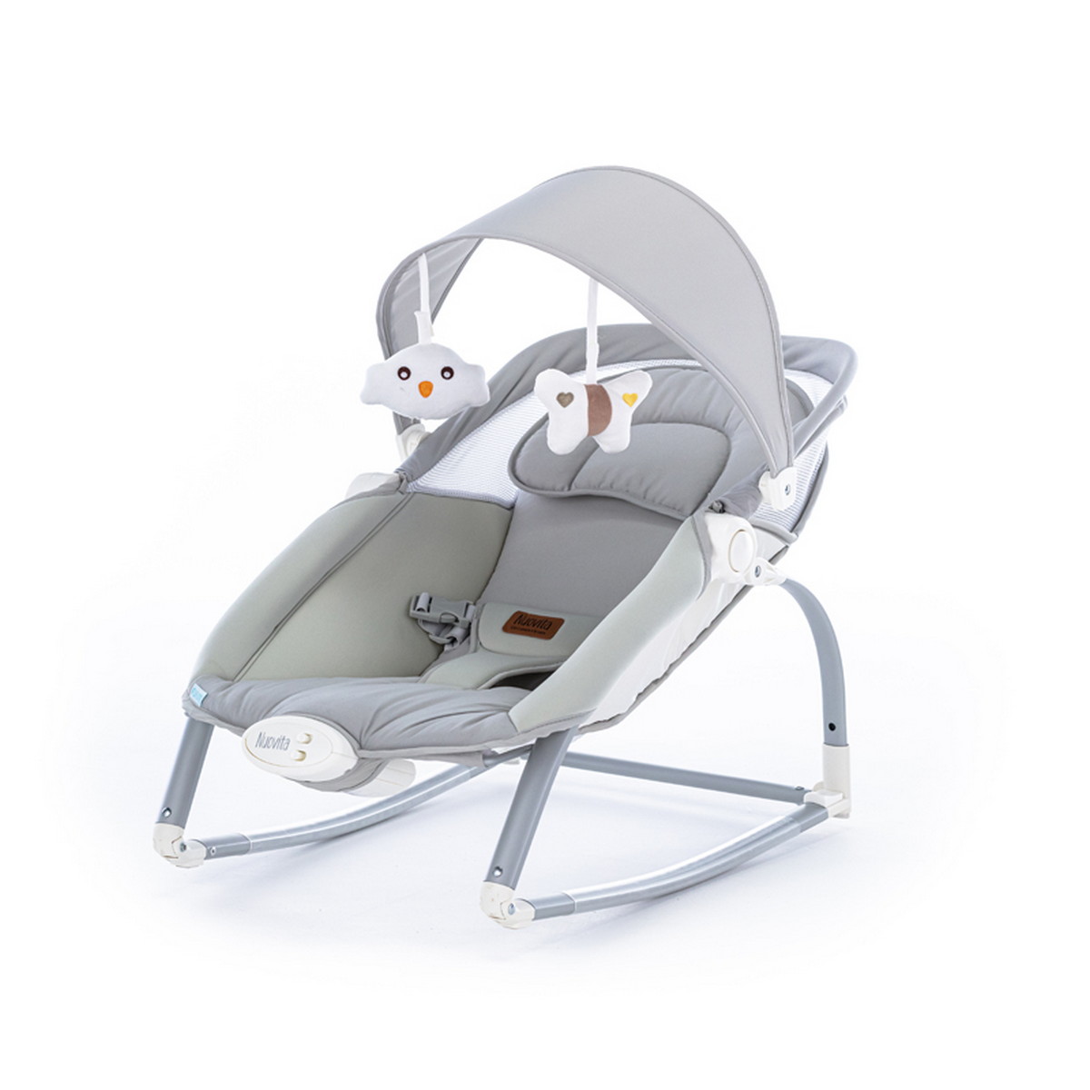 Шезлонг Mese от итальянской торговой марки Nuovita — это уютный и компактный шезлонг-качалка, который поможет родителям развлечь, успокоить и убаюкать новорожденного. Мягкие игрушки, подвешенные на дуге-козырьке, помогут малышу в развитии глазных мышц и вестибулярного аппарата.