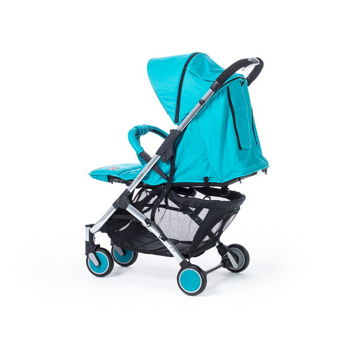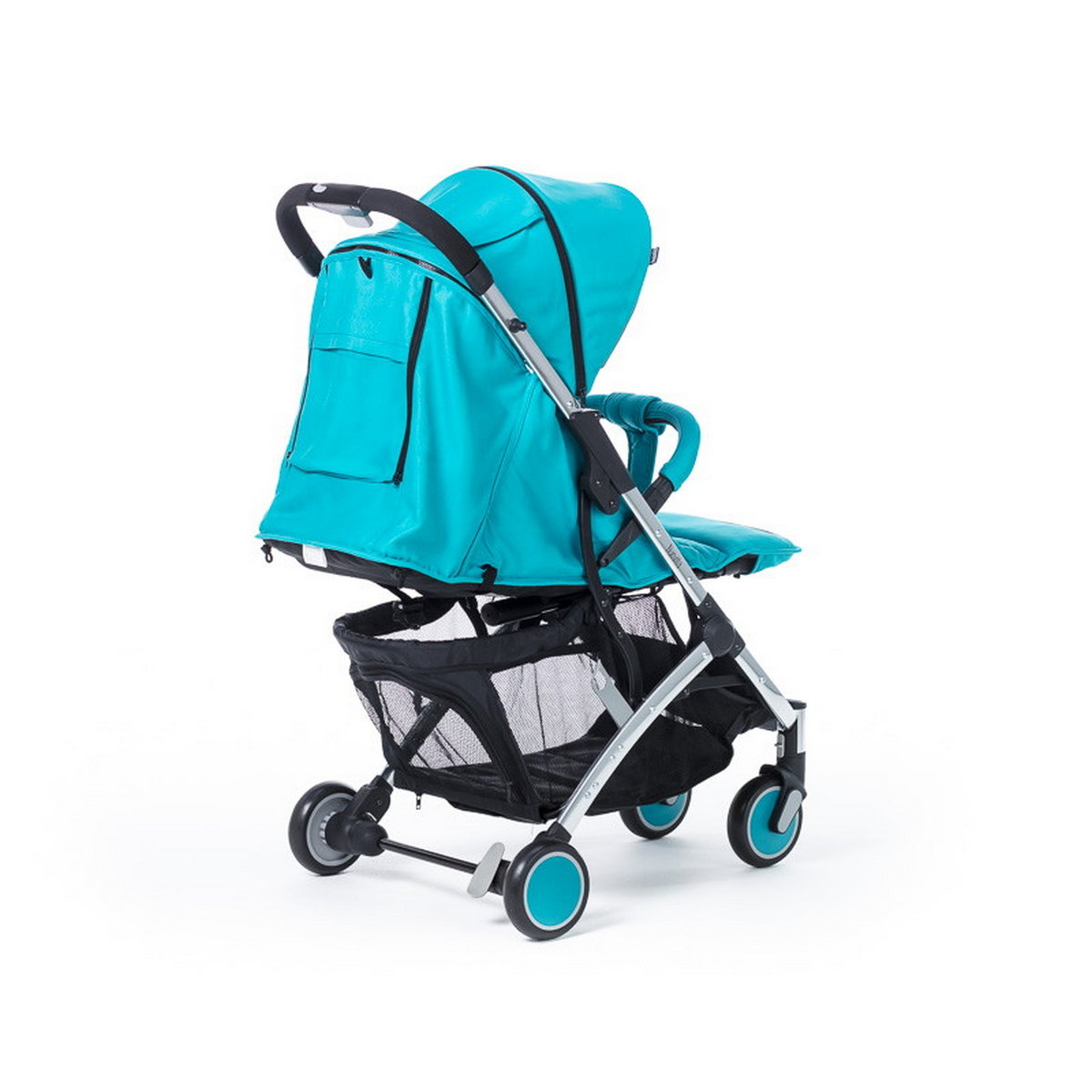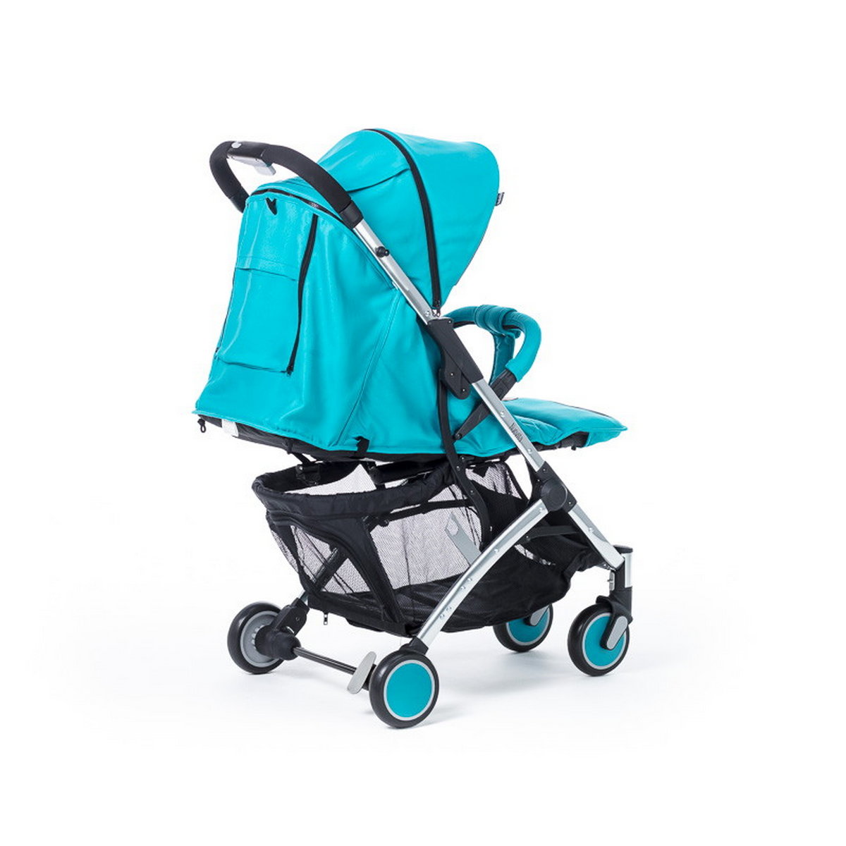 Капор бесшумно регулируется в 3-х положениях, его объем увеличивается благодаря откидному козырьку от солнца: в раскрытом состоянии капор почти полностью закрывает верхнюю часть коляски. Для вентиляции и наблюдения капор оснащен окошком. Обивка коляски изготовлена из прочной ткани 300D лен, которая предохранит от дождя и УФ-лучей, не продувается и легко чистится. Бампер и родительская ручка имеют практичные накладки из экокожи. В капор вшит светоотражающий кант.