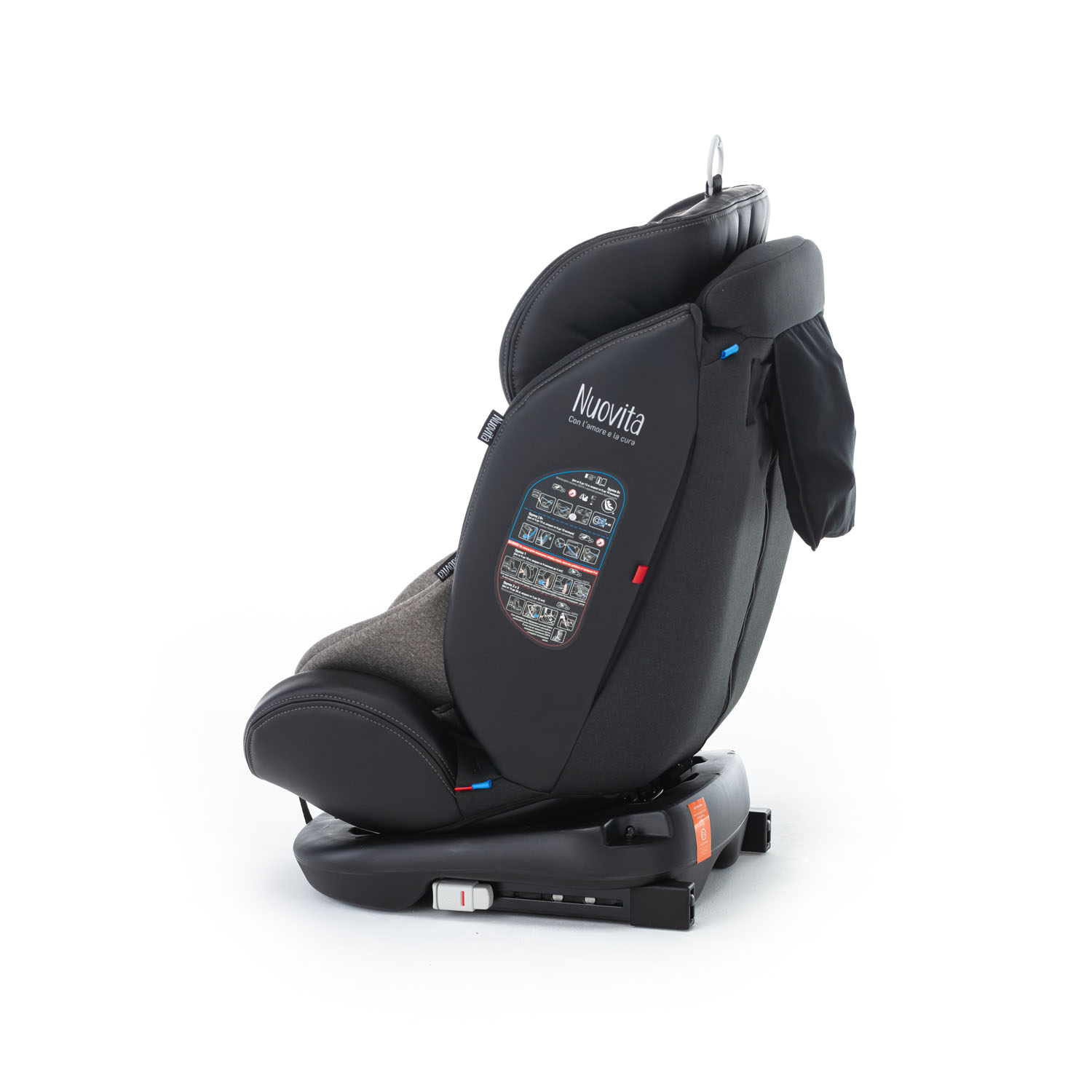 Безопасность, комфорт и универсальность — вот основные цели, которые преследовал бренд Nuovita при разработке автокресла Maczione N0123i-1L. Первая задача реализована в троекратном объеме: устройство удерживается в автомобиле при помощи системы ISOFIX, штатных ремней и якорного ремня Top Tether, благодаря которому снижается нагрузка на шейный отдел позвоночника во время экстренного торможения, минимизируя риск травм головы и шеи, — бескомпромиссное решение!